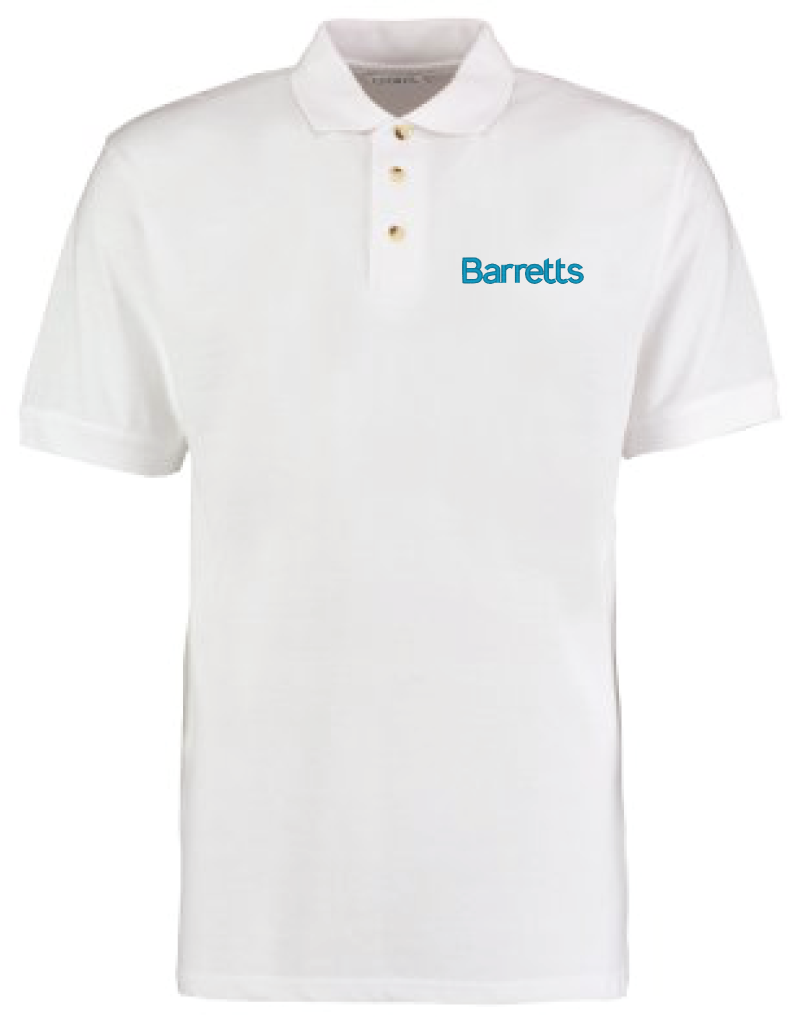 White workwear polo, embroidered with the Barretts logo in blue on the left chest.